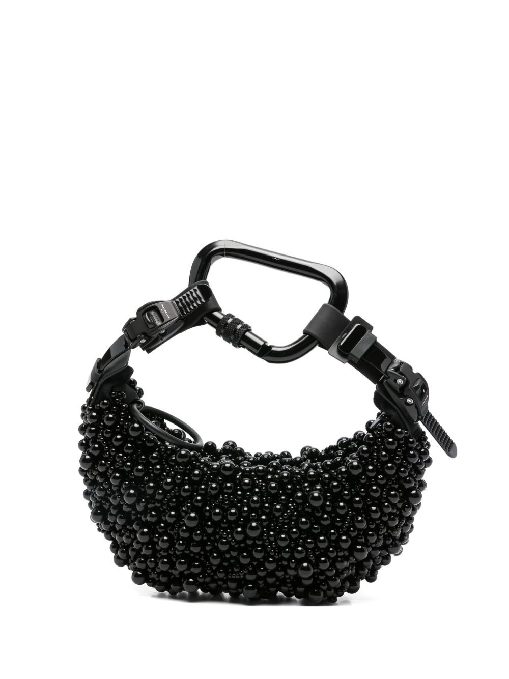 beaded carabiner clutch bag Highlights - Black - Beaded embellishment - Carabiner clasp - Adjustable strap - Curved shape - Gathered detailing Imported Composition Outer: Polyester 100%, Polyurethane 100%, Cotton 100% Lining: Cotton 100% SIZE & FIT Model measurements Height 6 ft 2 in(1.87 m) Bust/Chest 36.41 in(92.5 cm) Hips 37 in(94 cm) Waist 29.52 in(75 cm) Measurement DEPTH 3.54 in(9 cm) HEIGHT 6.29 in(16 cm) WIDTH 10.23 in(26 cm) STRAP 40.94 in(104 cm)