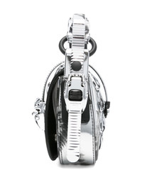 metallic-buckle patterned tote bag Highlights - Silver - Clasp fastening - Top handle - Buckle embellishment Made in Italy Composition Outer: Polyurethane 100% SIZE & FIT Model measurements Height 6 ft 2 in(1.87 m) Bust/Chest 36.41 in(92.5 cm) Hips 37 in(94 cm) Waist 29.52 in(75 cm) Measurement DEPTH 1.57 in(4 cm) HEIGHT 4.33 in(11 cm) WIDTH 6.69 in(17 cm)