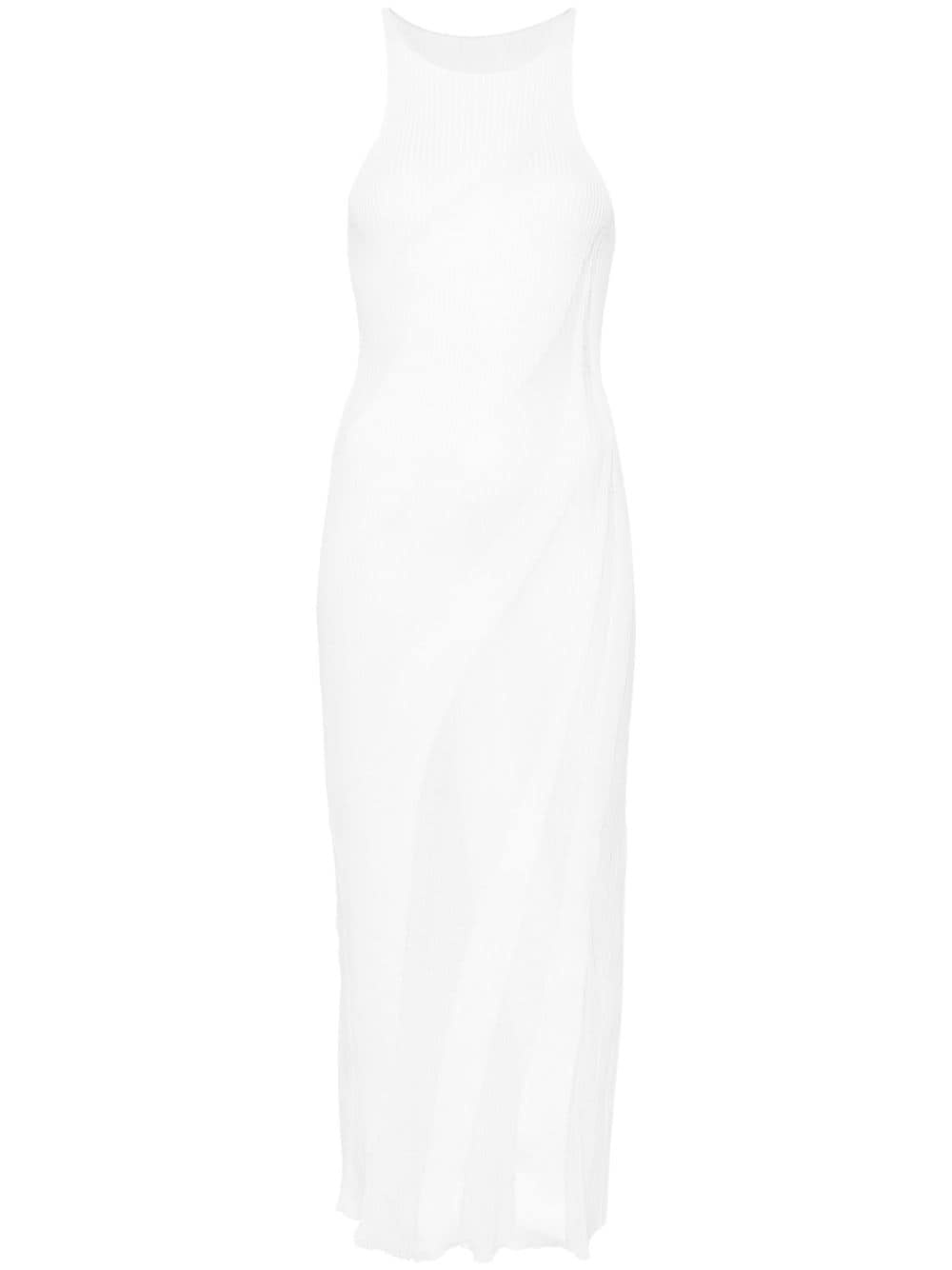 Walking sheer-panels maxi dress Highlights - Milk white - Ribbed knit - Semi-sheer panels - Round neck - Sleeveless - Slight flare - Straight hem - Long length Imported Composition Rayon 100% SIZE & FIT Model measurements Height 5 ft 10 in(1.77 m) Bust/Chest 33.07 in(84 cm) Hips 37 in(94 cm) Waist 24.8 in(63 cm) FittingInformation Designed for a close fit throughout Made with a lightweight knit, this piece offers some stretch This piece's size conversion is based on body measurements; for help with this item's sizing, refer to our Size & Fit Guide