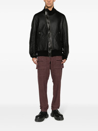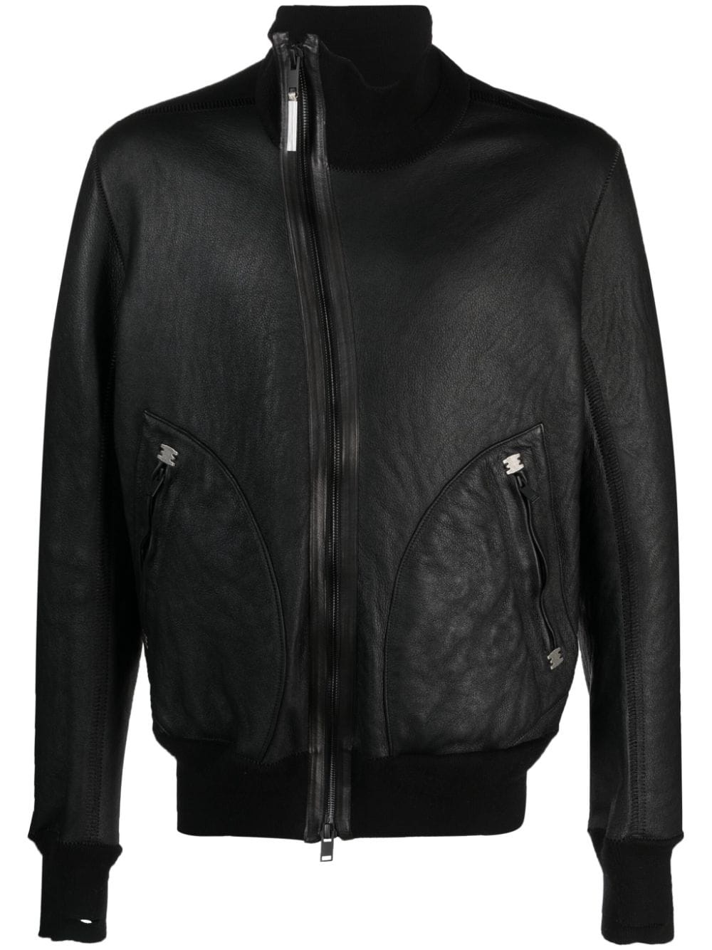 off-centre leather bomber jacket Highlights - Black - Leather - High neck - Off-centre front two-way zip fastening - Long sleeves - Two side zip-fastening pockets - Ribbed cuffs and hem - Straight hem Made in France Composition Lining: Lamb Fur 100% Outer: Cotton 100%, Lambskin 100% SIZE & FIT Model measurements Height 6 ft 1 in(1.86 m) Bust/Chest 36.61 in(93 cm) Hips 37 in(94 cm) Waist 28.74 in(73 cm) FittingInformation Designed to be unstructured, offering a loose fit throughout Made from a midweight non-stretch fabric This piece fits true to size – take your usual size Washing instructions Specialist Cleaning