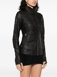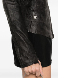 prudent leather jacket Highlights - Black - Off-centre front zip fastening - Two side inset pockets - Silver-tone logo plaque - Zip details Made in France Composition Lamb Skin 100% SIZE & FIT Model measurements Height 5 ft 10 in(1.79 m) Bust/Chest 33.07 in(84 cm) Hips 35.82 in(91 cm) Waist 24.01 in(61 cm) FittingInformation Designed for a slim fit that sits just away from the body offering a close yet comfortable fit The sleeves are constructed with additional length and built-in thumb loops that allow for movement and a secure fit Soft leather has a supple and smooth construction offering some flexibility
