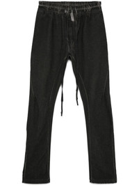 4 Pockets Stripe trousers Highlights - Charcoal grey - Organic cotton - Seersucker texture - Concealed front press-stud fastening - Elasticated drawstring waistband - Two side slash pockets - Ribbed panelling between legs - Applique detail to the back - Two rear patch pockets - Full-length - Slim cut Made in France Composition Organic Cotton 100%, Leather 100%