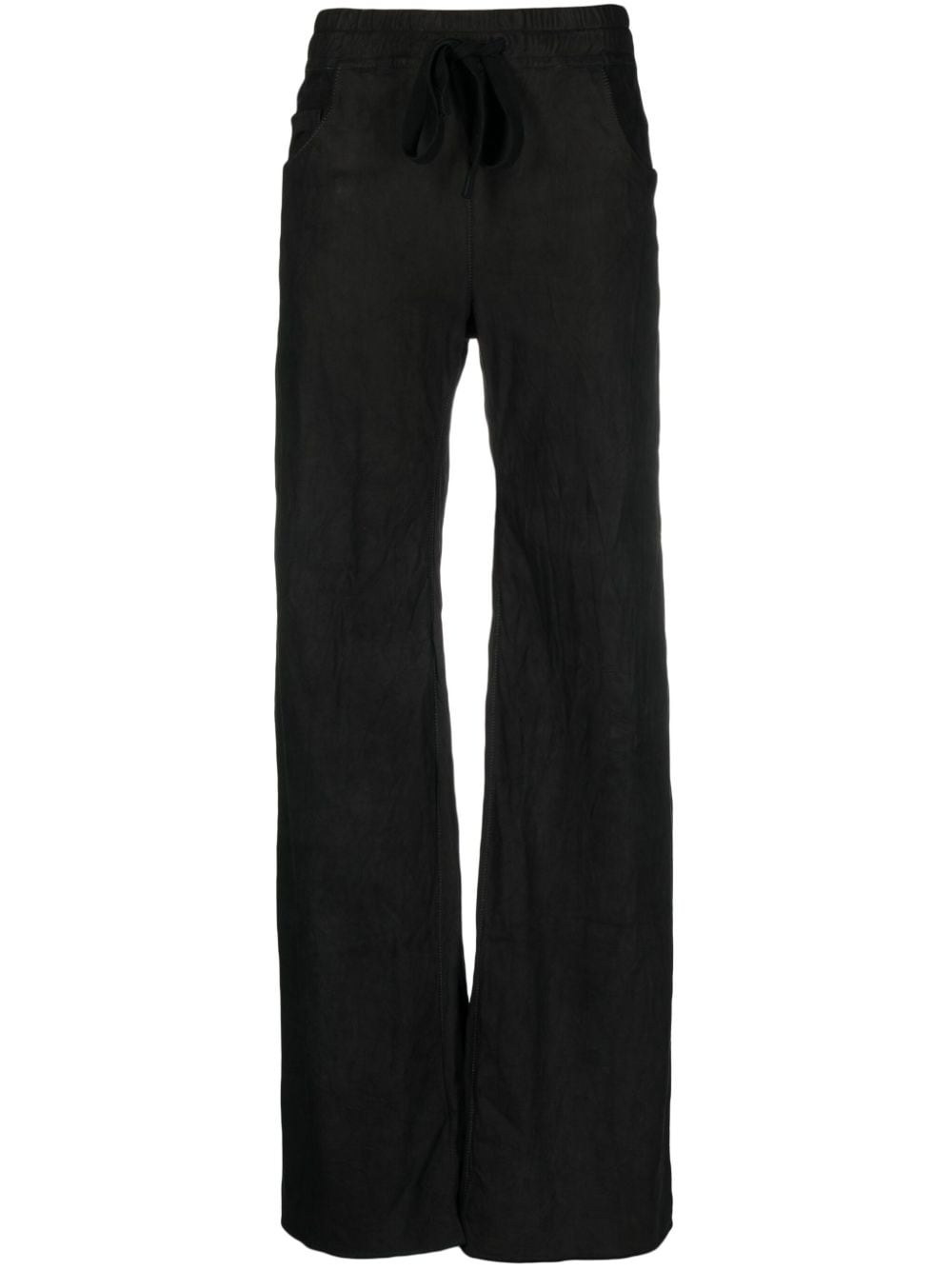 straight-leg leather trousers Highlights - Black - Leather - Elasticated drawstring waistband - Straight leg - Two diagonal pockets to the sides - Straight hem Made in France Composition Leather 100%
