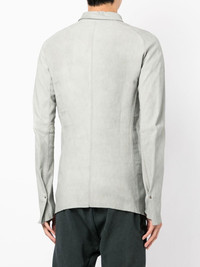 suede long-sleeve shirt A stylish suede shirt by Isaac Sellam Experience, in a beautiful light sage green. There are contrasting black buttons down the front, with a small collar, long sleeves and an asymmetric cut design at the hem. Made in France Composition Leather 100% SIZE & FIT Model measurements Height 6 ft 2 in(1.87 m) Bust/Chest 34.25 in(87 cm) Hips 36.22 in(92 cm) Waist 29.52 in(75 cm) FittingInformation This piece fits true to size. We recommend you get your regular size Cut for a slim fit Made from supple hide Washing instructions Dry Clean Only