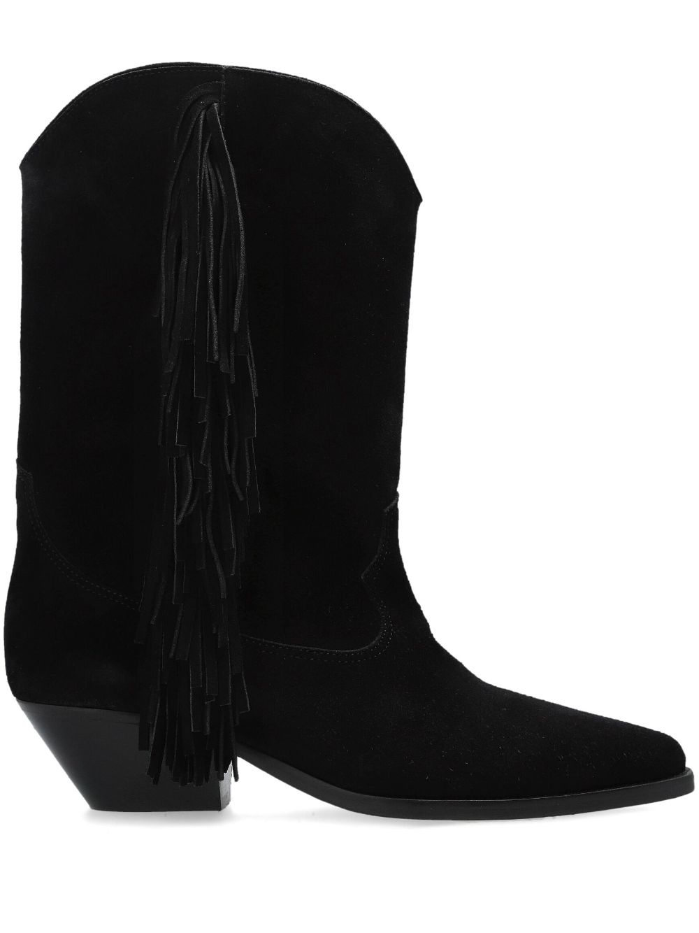 40mm Duerto boots Highlights - Black - Low block heel - Slip-on style - Fringe detailing - Pointed toe Imported Composition Suede 100% SIZE & FIT Measurement HEEL 1.57 in(4 cm)