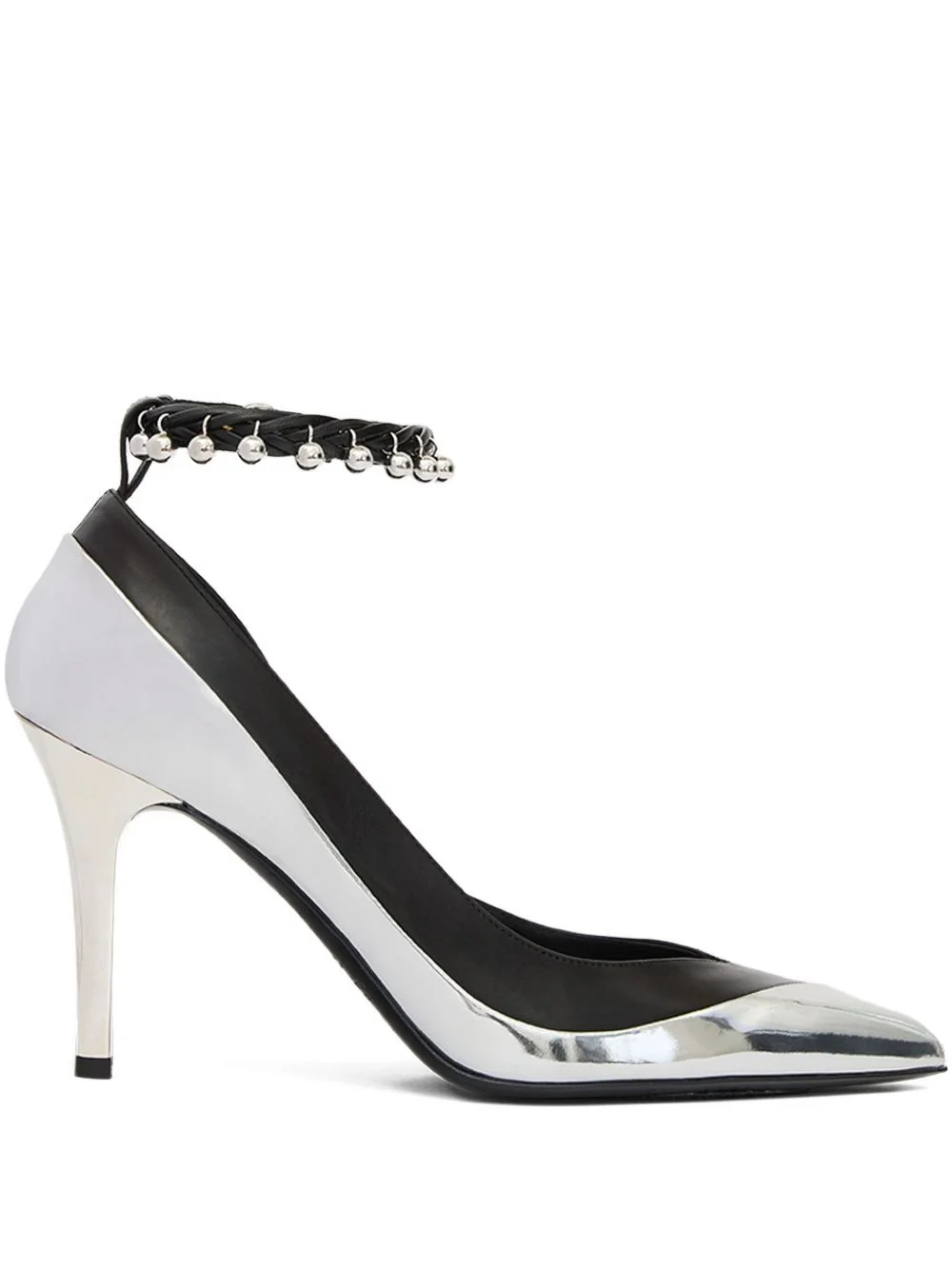 90mm Peleny heeled pumps Highlights - Black - Buckle-fastening ankle strap - Pointed toe - Branded insole Made in Italy Composition Outer: Polyurethane 59%, Polyester 41% Lining: Fabric 100% Sole: Rubber 100% SIZE & FIT Measurement HEEL 3.54 in(9 cm)