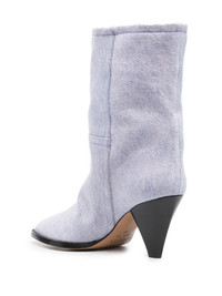75mm Rouxa suede boots Highlights - Lilac purple - Calf leather - Seam detailing - Pointed toe - 90mm mid heel Made in Italy Composition Cotton 100% SIZE & FIT Measurement HEEL 3.54 in(9 cm) HEIGHT 6.88 in(17.5 cm) Sole height 0.59 in(1.5 cm)