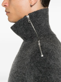 Aliocha sweater Highlights - Dark grey - Alpaca wool-blend - Knitted construction - Stand-up collar - Long sleeves - Ribbed cuffs and hem - Straight hem - Shoulder zip fastening Imported Composition Alpaca Wool 63%, Recycled Polyamide 32%, Elastane 5% SIZE & FIT Model measurements Height 6 ft 1 in(1.85 m) Bust/Chest 35.82 in(91 cm) Hips 37.79 in(96 cm) Waist 29.13 in(74 cm) FittingInformation Designed for a relaxed fit, this piece allows for comfort and movement when worn Made with a midweight knit, this piece offers some stretch This piece fits true to size – take your usual size