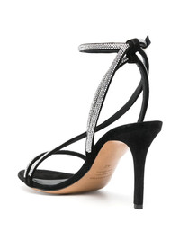 Atria 85mm crystal-embellished sandals black/silver-tone goat suede/calf leather crystal embellishment multi-way strap design open toe buckle-fastening ankle strap branded leather insole branded footbed 85mm heel Made in Italy Composition Outer: Goat Skin 100% Sole: Calf Leather 100% Lining: Calf Leather 100% SIZE & FIT Measurement HEEL 3.93 in(10 cm)