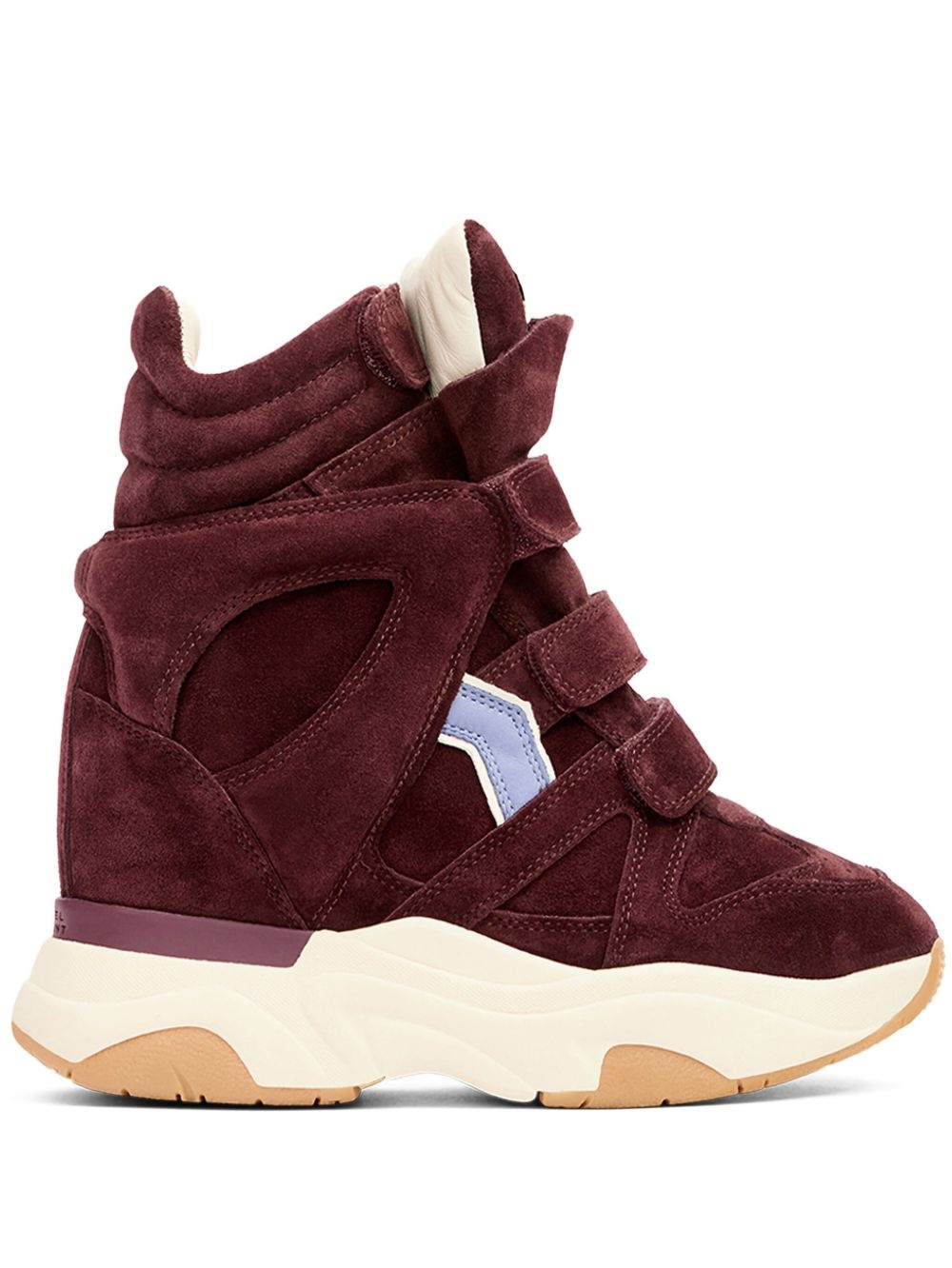 Balskee suede panelled wedge sneakers Highlights - Burgundy red - Touch-strap fastening - Tonal ankle collar - Contrasting logo detailing - Chunky rubber sole Imported Composition Sole: Rubber 100% Outer: Calf Leather 95%, Lambskin 5% Lining: Pig Leather 100%
