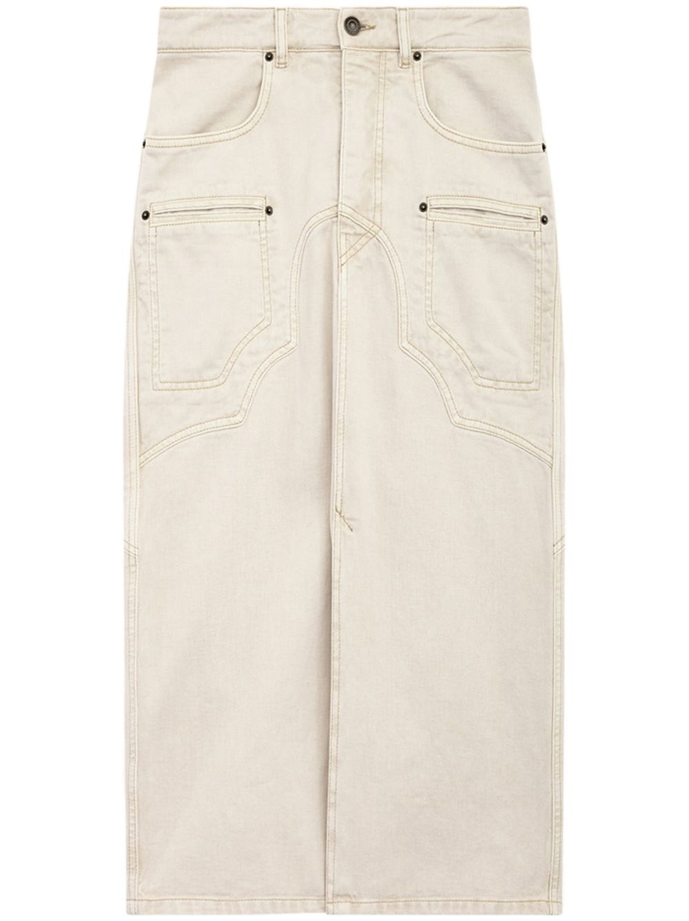 Britt skirt Highlights - Ecru - Cotton-hemp blend - Denim - Concealed fly and button fastening - Belt loops - Logo patch to the rear - Two side slash pockets - Two rear patch pockets - Two front patch pockets - Tonal stitching - Front slit - Straight hem - Mid-length Imported Composition Outer: Cotton 80%, Hemp 20% Lining: Cotton 100% SIZE & FIT FittingInformation This midi-length skirt is intended to be worn high on the waist Sturdy and hard-wearing, this denim piece offers no stretch