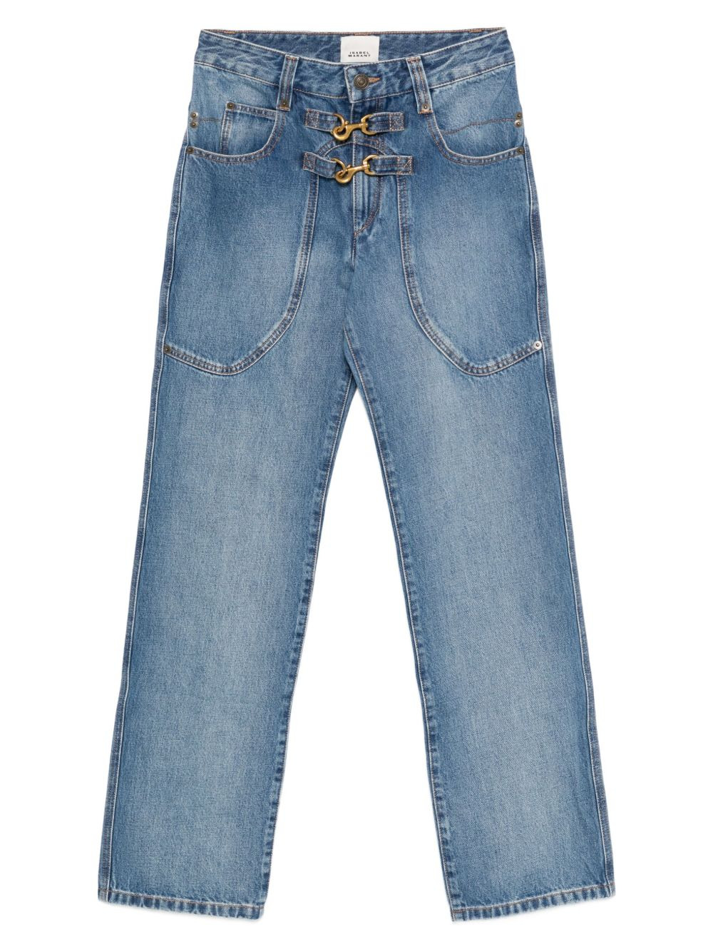 buckled patch-pocket jeans Highlights - Blue - Patch pockets - Buckle fastening - High waist - Straight leg - Cotton Imported Composition Cotton 100% SIZE & FIT Model measurements Height 5 ft 9 in(1.75 m) Bust/Chest 32.67 in(83 cm) Hips 36.22 in(92 cm) Waist 24.8 in(63 cm) FittingInformation Designed for a straight-leg fit, these jeans allow for a close fit at the waist and an unrestricted and comfortable fit over the leg Washing instructions Read Manufacturer Guidelines