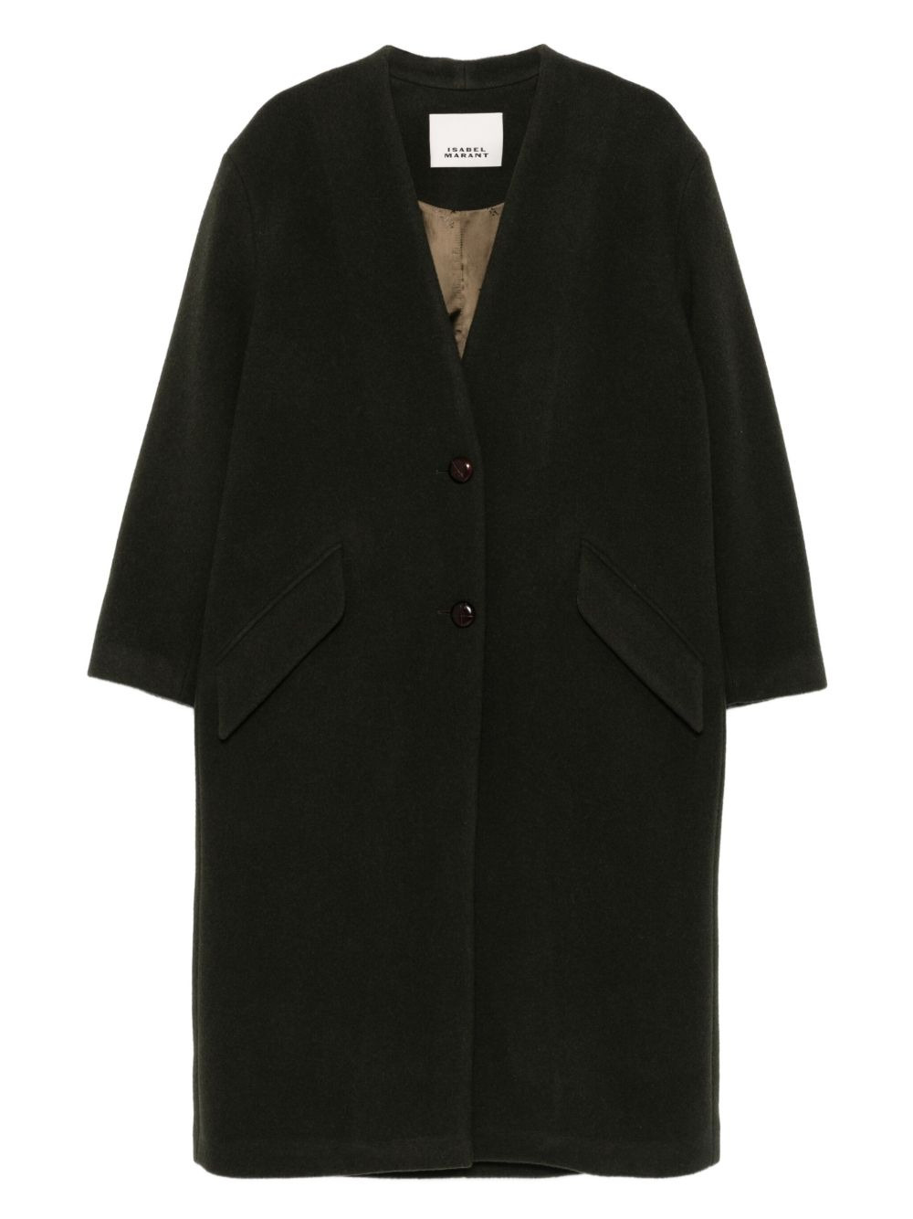 button-front patch-pocket coat Highlights - Dark khaki - Button front fastening - Patch pockets - Three-quarter sleeves - V-neck - Straight hem Imported Composition Outer: Wool 75%, Polyamide 25% Lining: Satin 100% SIZE & FIT Model measurements Height 5 ft 9 in(1.75 m) Bust/Chest 34.64 in(88 cm) Hips 36.61 in(93 cm) Waist 26.37 in(67 cm) Washing instructions Dry Clean Only