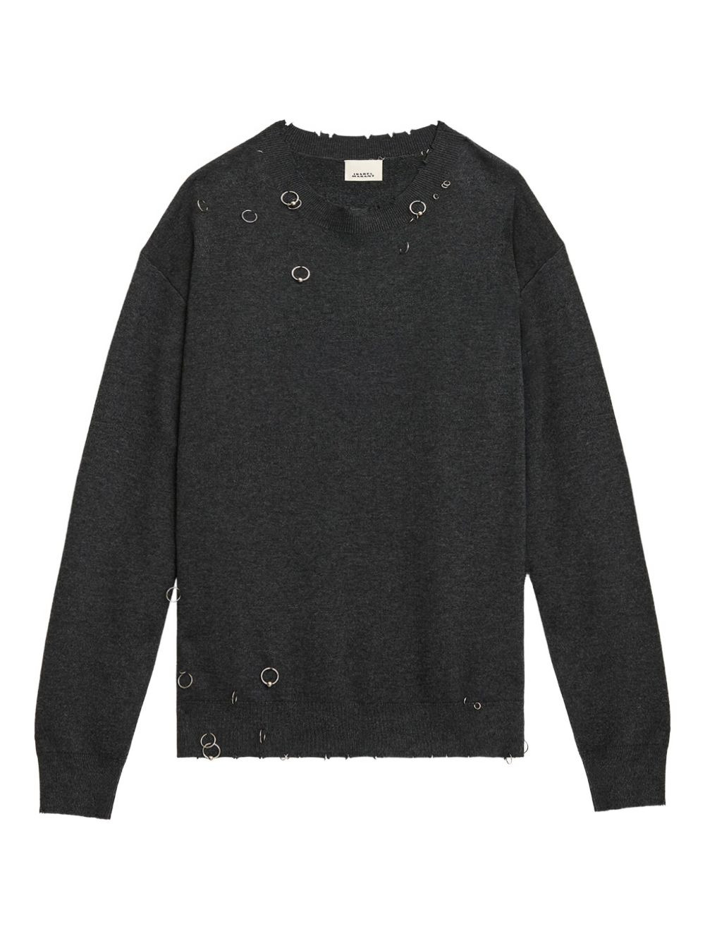 Cassandre ring-embellished pullover Highlights - Dark grey - Metal ring embellishments - Raw edges - Long sleeves Imported Composition Viscose 70%, Wool 30% Washing instructions Read Manufacturer Guidelines