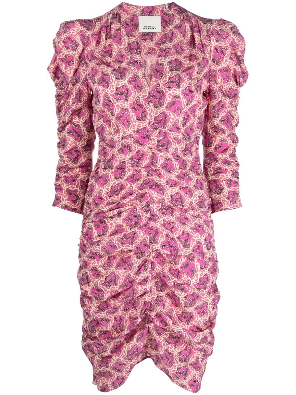 Celina graphic-print dress Highlights - Fuchsia pink - Stretch-silk - All-over graphic print - Gathered detailing - V-neck - Rear zip fastening - Three-quarter length sleeves - Knee-length Imported Composition Silk 91%, Elastane 9% SIZE & FIT FittingInformation Designed for a slim fit that sits just away from the body offering a close yet comfortable fit Made from a lightweight stretch fabric, this piece offers elasticity and flexibility when worn This piece fits true to size – take your usual size Washing instructions Dry Clean Only