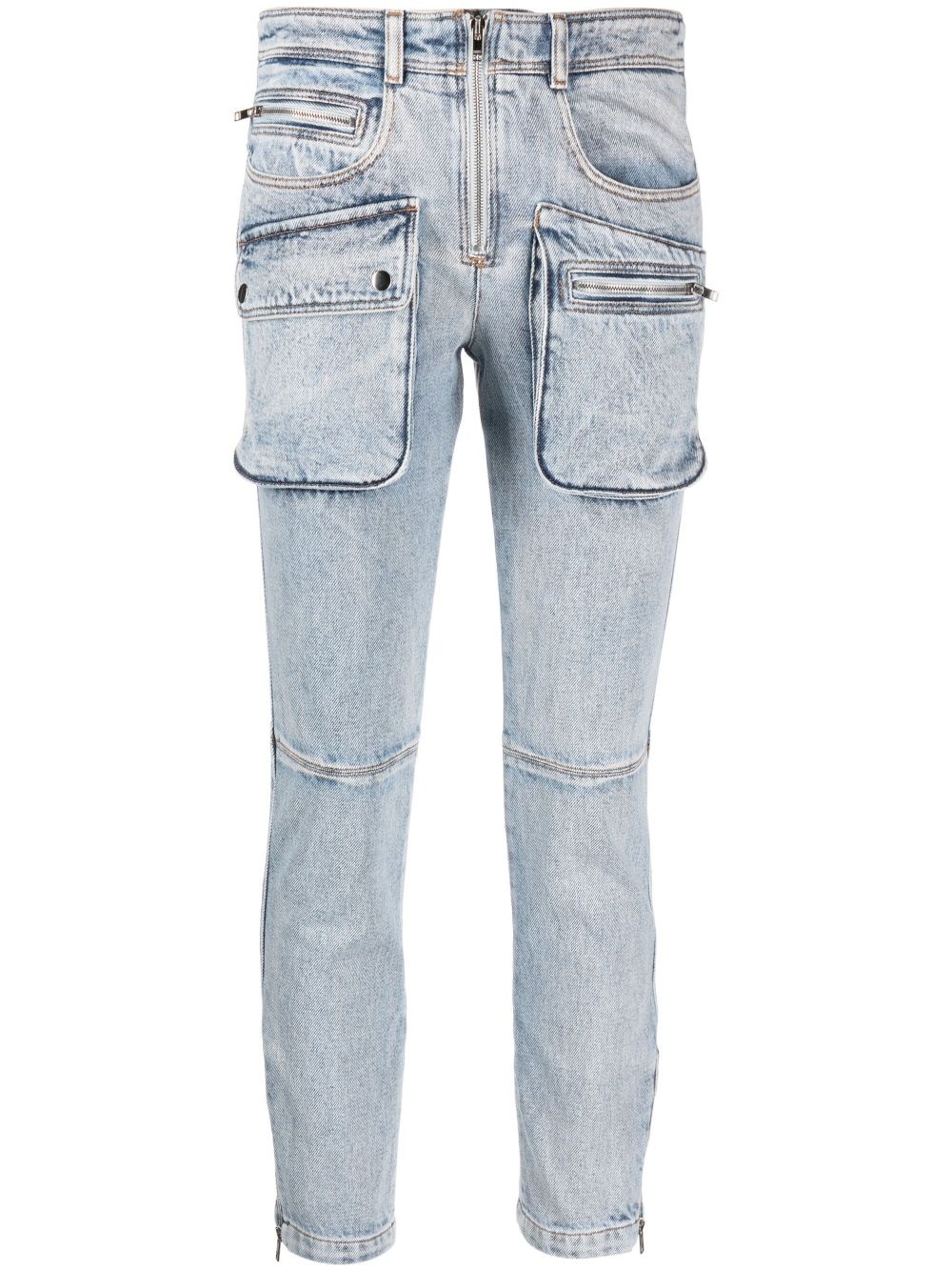 Cenime multi-pocket straight-leg jeans The Cenime straight-leg jeans showcase a utilitarian style. They're detailed with multiple zip-fastening pockets for a practical look. Highlights - Light blue - Cotton - Button fly fastening - Two front welt pockets - Two side zip-fastening pockets - Two rear zip-fastening pockets - Straight leg Imported Composition Outer: Cotton 100% Lining: Polyester 65%, Cotton 35% SIZE & FIT Model measurements Height 5 ft 10 in(1.78 m) Bust/Chest 31.49 in(80 cm) Hips 35.03 in(89 cm) Waist 23.62 in(60 cm) FittingInformation Designed for a straight-leg fit, these jeans allow for a close fit at the waist and an unrestricted and comfortable fit over the leg Sturdy and hard-wearing, this denim piece offers no stretch This piece fits true to size – take your usual size Washing instructions Machine Wash