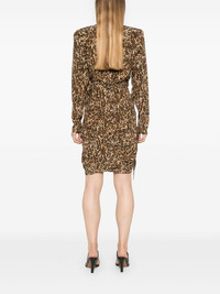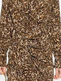 Cleora mini dress Highlights - Black/brown/beige - Silk blend - Crepe texture - Wrap design - All-over leopard print - Concealed side zip fastening - Self-tie fastening - V-neck - Shoulder pads - Long sleeves - Fitted waistline - Draped and ruched detailing - Side slit - Unlined - Curved hem - Thigh-length Imported Composition Silk 91%, Elastane 9% SIZE & FIT Model measurements Height 5 ft 9 in(1.75 m) Bust/Chest 30.7 in(78 cm) Hips 35.03 in(89 cm) Waist 23.62 in(60 cm) FittingInformation Designed for a loose fit at the chest with a close fit over the waist and hips The internal shoulder pads offer a structured shape Made from a lightweight stretch fabric, this piece offers elasticity and flexibility when worn