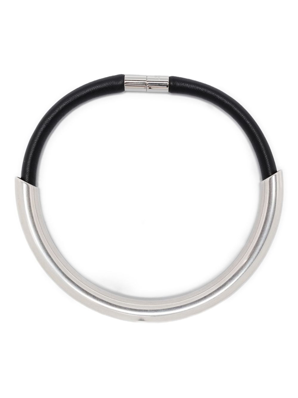cord-leather necklace Highlights - Black - Leather cord - Silver-tone hardware - Magnetic clasp - Cylindrical ends Imported SIZE & FIT Model measurements Height 5 ft 11 in(1.8 m) Bust/Chest 32.67 in(83 cm) Hips 36.22 in(92 cm) Waist 24.4 in(62 cm) Measurement CIRCUMFERENCE 14.01 in(35.6 cm) WIDTH 0.47 in(1.2 cm)