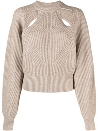 cut-out knitted jumper Isabel Marant reimagines knitwear for AW22 with this contemporary design. Imagined in a light beige hue, this soft wool and cashmere blend is elevated by cut-out detailing to the front and rear, adding a modern touch to a classic knit. Imported Composition Wool 70%, Cashmere 30% SIZE & FIT Model measurements Height 5 ft 10 in(1.77 m) Bust/Chest 32.67 in(83 cm) Hips 35.43 in(90 cm) Waist 23.62 in(60 cm) FittingInformation This piece fits true to size. We recommend you get your regular size Cut for a loose fit Made with a mid-weight fabric Washing instructions Hand Wash
