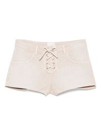 Delma shorts Highlights - Ecru - Concealed front button fastening - Front lace-up fastening - Two side slit pockets - Two rear patch pockets Imported Composition Outer: Cotton 100% Lining: Cotton 100% SIZE & FIT FittingInformation Designed for a close fit throughout Sturdy and hard-wearing, this denim piece offers no stretch Washing instructions Machine Wash