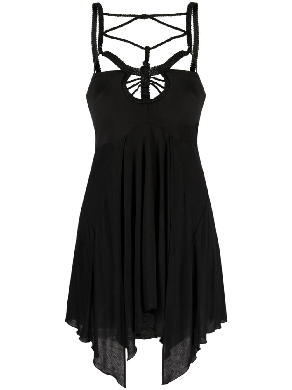 Diana macrame-trim minidress Illustrating Isabel Marant's bohemian aesthetic, this Diana dress is detailed with a cut-out macrame neckline. It falls to a floaty skirt with an asymmetric handkerchief hem. Highlights - Black - Lightweight jersey - Macrame detailing - Cut-out detailing - Thin shoulder straps - Pleated skirt - Asymmetric hem - Above-knee length Imported Composition Viscose 100% SIZE & FIT Model measurements Height 5 ft 10 in(1.78 m) Bust/Chest 29.92 in(76 cm) Hips 34.64 in(88 cm) Waist 23.62 in(60 cm) FittingInformation Designed for a close fit at the chest with a loose fit over the waist and hips Made from a midweight non-stretch fabric, this piece offers minimal elasticity when worn This piece fits true to size – take your usual size Washing instructions Dry Clean Only