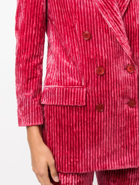 Dita double-breasted corduroy blazer ISABEL MARANT re-vamps the traditional double-breasted silhouette of this Dita blazer with statement appeal. The corduroy construction has a plush velvety finish that lends the vibrant raspberry-pink hue a subtle sheen. Highlights - Raspberry pink - Cotton - Corduroy - Velvet effect - Peak lapels - Double-breasted button fastening - Jetted chest pocket - Two side flap pockets - Long sleeves - Straight hem - Central rear vent - Full lining Imported Composition Outer: Viscose 61%, Cotton 31%, Elastane 1% Lining: Viscose 51%, Cotton 49% SIZE & FIT Model measurements Height 5 ft 11 in(1.8 m) Bust/Chest 31.49 in(80 cm) Hips 35.43 in(90 cm) Waist 24.4 in(62 cm) FittingInformation Designed for a slim fit that sits just away from the body offering a close yet comfortable fit The internal shoulder pads offer a structured shape Made from a midweight fabric This piece fits true to size – take your usual size Washing instructions Dry Clean Only