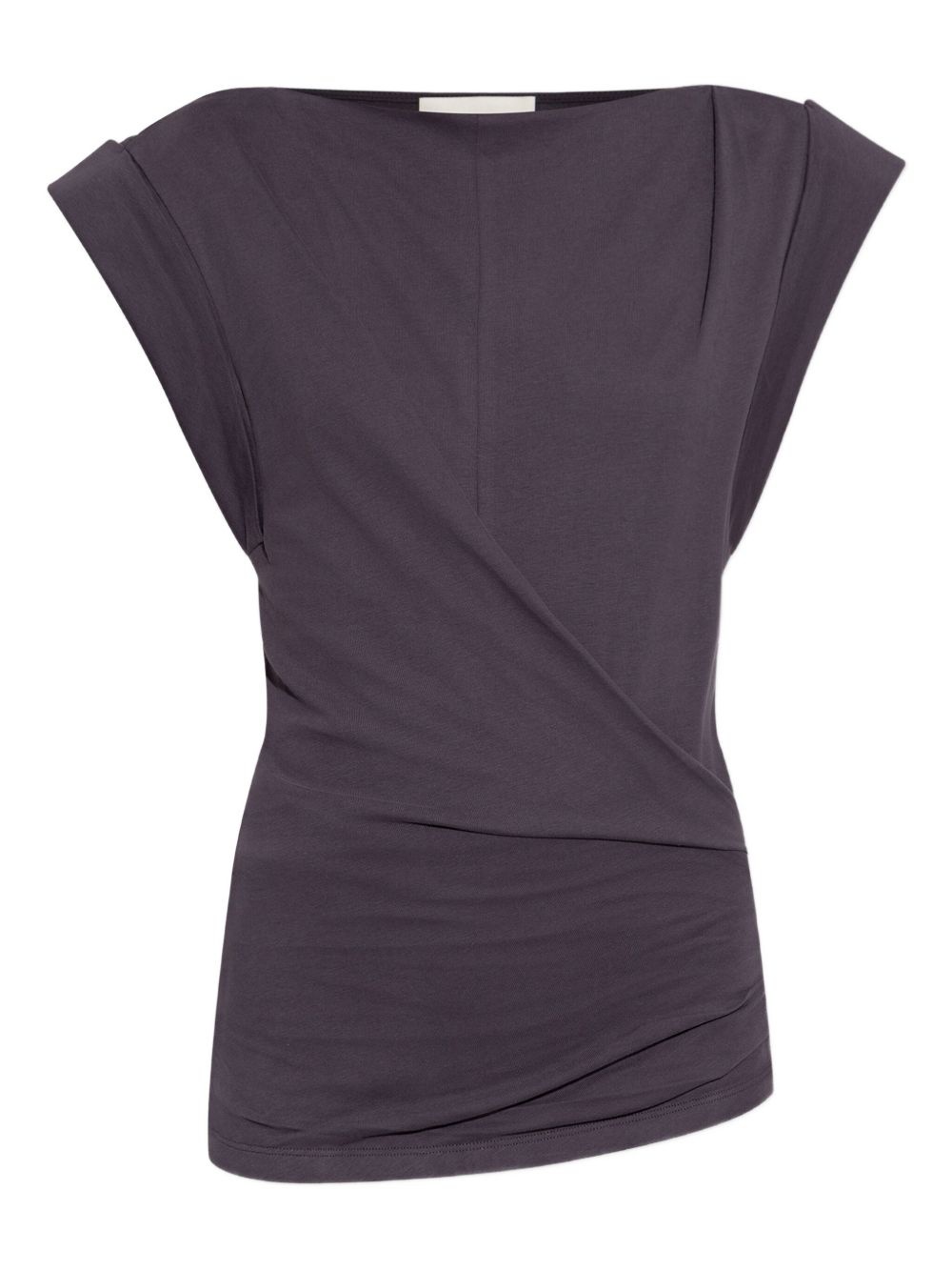 draped-shoulder cotton t-shirt Highlights - Plum purple - Draped neckline - Short sleeves - Asymmetrical hem Imported Composition Outer: Cotton 100% Washing instructions Read Manufacturer Guidelines