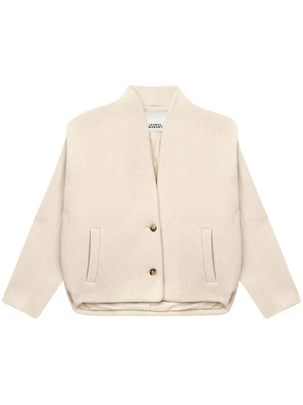 Drogo bomber jacket Highlights - Ecru - Wool blend - Front button fastening - V-neck - Long sleeves - Two side welt pockets - Straight hem Imported Composition Outer: Wool 75%, Polyamide 25% Lining: Cotton 100%, Viscose 53%, Cupro 47%