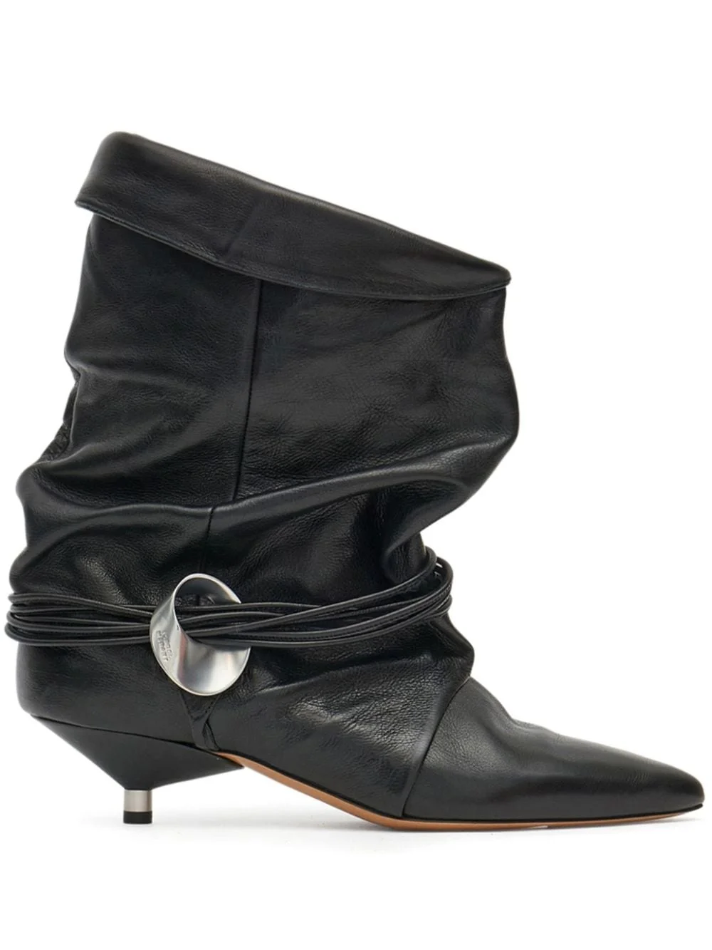 Edrika boots Highlights - Black - Calf leather - Slip-on style - Logo-engraved silver-tone hardware to the sides - Leather straps details to the sides - Pointed toe - Kitten heel - Branded leather insole - Leather sole Made in Italy Composition Outer: Calf Leather 100% Sole: Calf Leather 100% Lining: Calf Leather 100%
