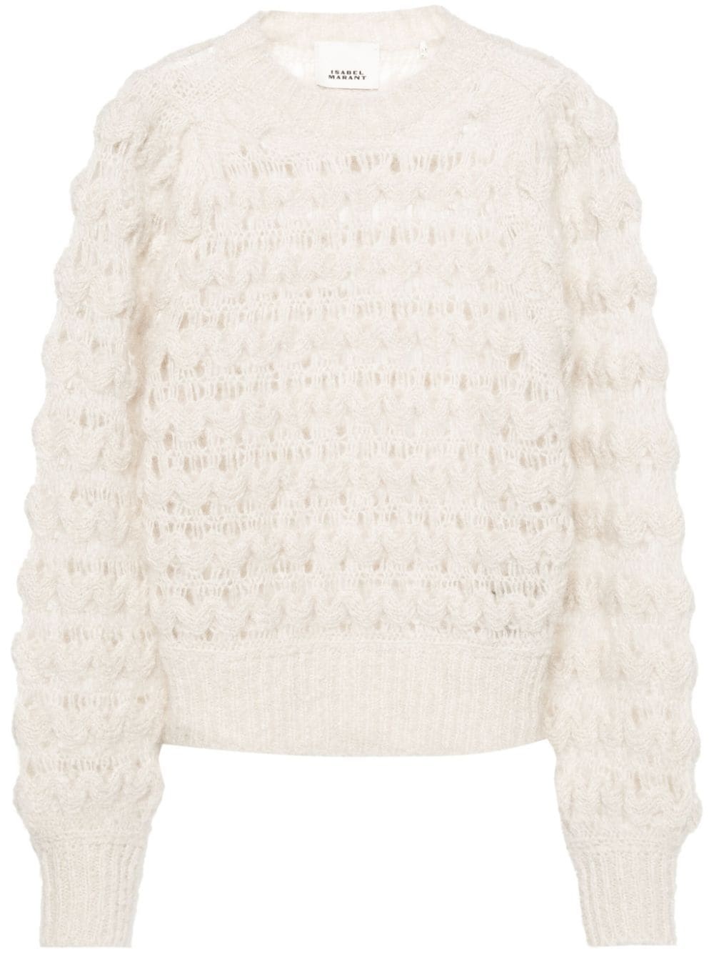 Elvire chunky jumper Highlights - Ecru - Mohair blend - Open knit - 3d-knit construction - Crew neck - Long puff sleeves - Ribbed cuffs and hem - Pull-on style Made in Italy Composition Mohair 62%, Polyamide 38% SIZE & FIT Model measurements Height 5 ft 11 in(1.8 m) Bust/Chest 31.49 in(80 cm) Hips 36.61 in(93 cm) Waist 24.4 in(62 cm) FittingInformation Designed for a relaxed fit, this piece allows for comfort and movement when worn The ribbed hem offers a close, comfortable fit Made with a midweight knit, this piece offers some stretch This piece fits true to size – take your usual size Washing instructions Hand Wash