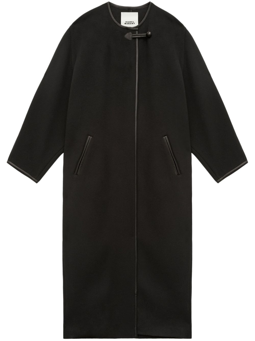 Elza coat Highlights - Black - Virgin wool-cashmere blend - Toggle fastening - Crew neck - Drop shoulder - Long sleeves - Two side slit pockets - Straight hem Imported Composition Outer: Viscose 100%, Virgin Wool 83%, Polyurethane 65%, Polyester 35%, Cashmere 15%, Polyamide 2% Lining: Cotton 100%