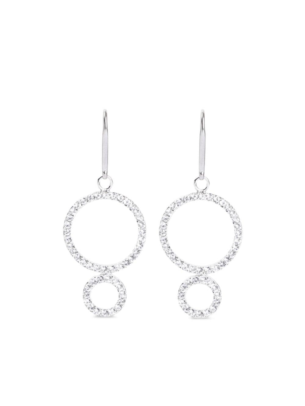 embellished brass earrings Highlights - Silver-tone - Brass - Glass crystal embellishment - Two circular pendant rings - Rear hook fastening Imported
