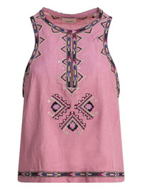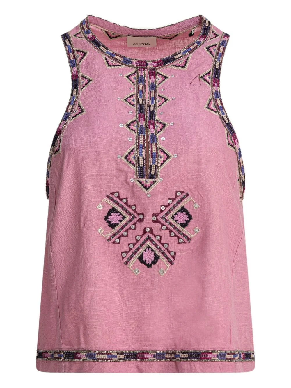 embroidered sleeveless tank top Highlights - Pink - Geometric embroidery - Beaded embellishment - Sleeveless - Round neck - Embroidered trim Imported Composition Silk 100% Washing instructions Read Manufacturer Guidelines