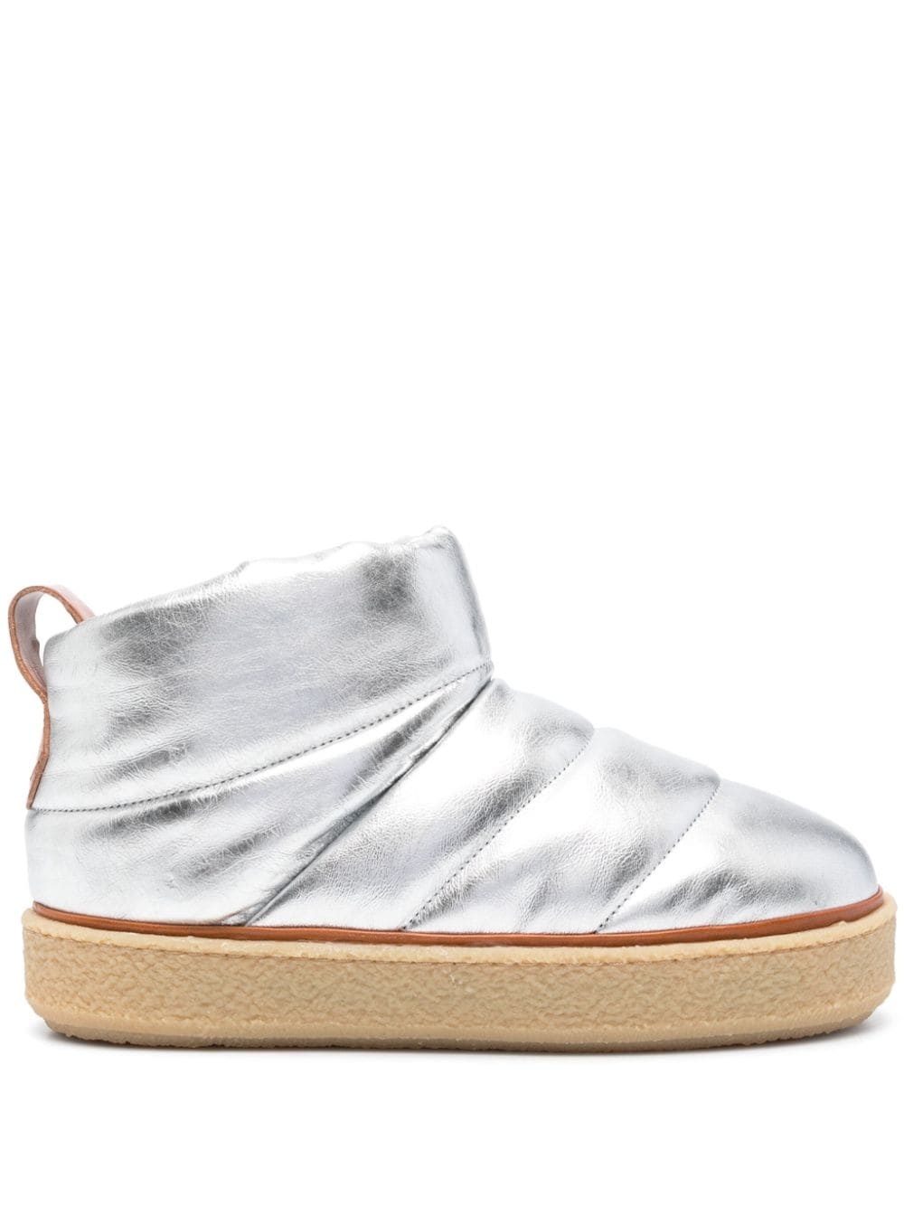 55mm Eskee ankle boots Highlights - Silver-tone - Calf leather - Metallic effect - Quilted - Logo pull-tab at the heel - Round toe - Slip-on style - Ankle-length - Branded leather insole - 55mm gum-rubber sole Imported Composition Leather 100% SIZE & FIT Measurement CIRCUMFERENCE 9.84 in(25 cm) HEEL 2.16 in(5.5 cm) HEIGHT 3.14 in(8 cm) Sole height 1.37 in(3.5 cm)