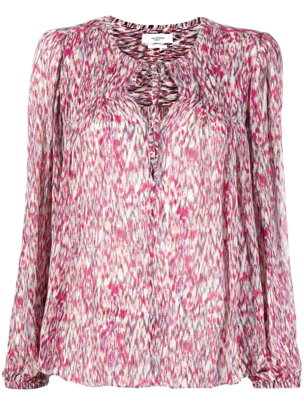 abstract-print blouse abstract-print blouse from ISABEL MARANT ETOILE featuring raspberry pink, abstract pattern print, gathered tie neck, long sleeves and straight hem. Imported Composition Viscose 100% SIZE & FIT Model measurements Height 5 ft 10 in(1.78 m) Bust/Chest 30.31 in(77 cm) Hips 36.61 in(93 cm) Waist 24.8 in(63 cm) FittingInformation This piece fits true to size. We recommend you get your regular size Cut for a loose fit Made with a lightweight non-stretch fabric Washing instructions Dry Clean Only