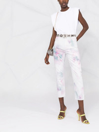 abstract-print cropped trousers white cotton abstract pattern print front button and zip fastening belt loops two rounded pockets to the sides two rear patch pockets cropped leg Imported Composition Outer: Cotton 100% Lining: Cotton 100% SIZE & FIT Model measurements Height 5 ft 11 in(1.8 m) Bust/Chest 32.67 in(83 cm) Hips 36.22 in(92 cm) Waist 24.4 in(62 cm) FittingInformation This piece fits true to size. We recommend you get your regular size Cut for a slim fit Made with a mid-weight non-stretch fabric Washing instructions Machine Wash