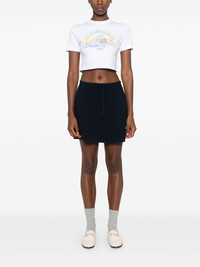 Amaline mini skirt Highlights - Midnight blue - Cotton-wool blend - Knitted construction - Drawstring waist - Two side slit pockets - Embroidered logo to the front - A-line - Unlined - Curved hem - Thigh-length Imported Composition Cotton 41%, Viscose 22%, Wool 18%, Polyester 9%, Polyamide 9%, Elastane 1% SIZE & FIT Model measurements Height 5 ft 10 in(1.78 m) Bust/Chest 31.49 in(80 cm) Hips 37 in(94 cm) Waist 23.62 in(60 cm) FittingInformation This mini-length skirt is intended to be worn just below the waist Made with a midweight knit, this piece offers some stretch