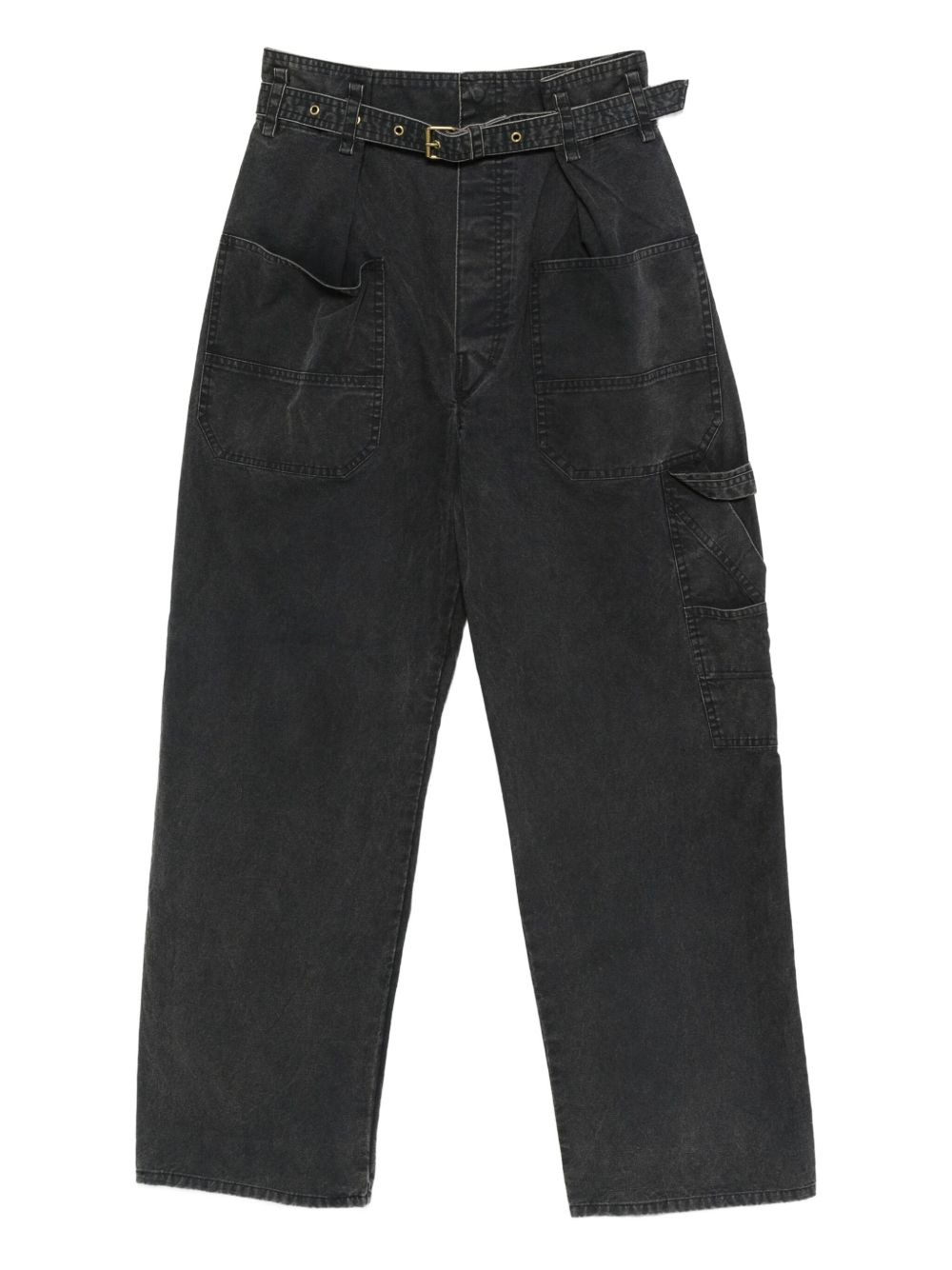belted pocket trousers Highlights - Faded black - High waist - Pleated front - Multiple pockets - Button fly - Belt fastening Imported Composition Fabric 100% SIZE & FIT Model measurements Height 5 ft 9 in(1.76 m) Bust/Chest 31.49 in(80 cm) Hips 35.03 in(89 cm) Waist 24.8 in(63 cm) Washing instructions Read Manufacturer Guidelines