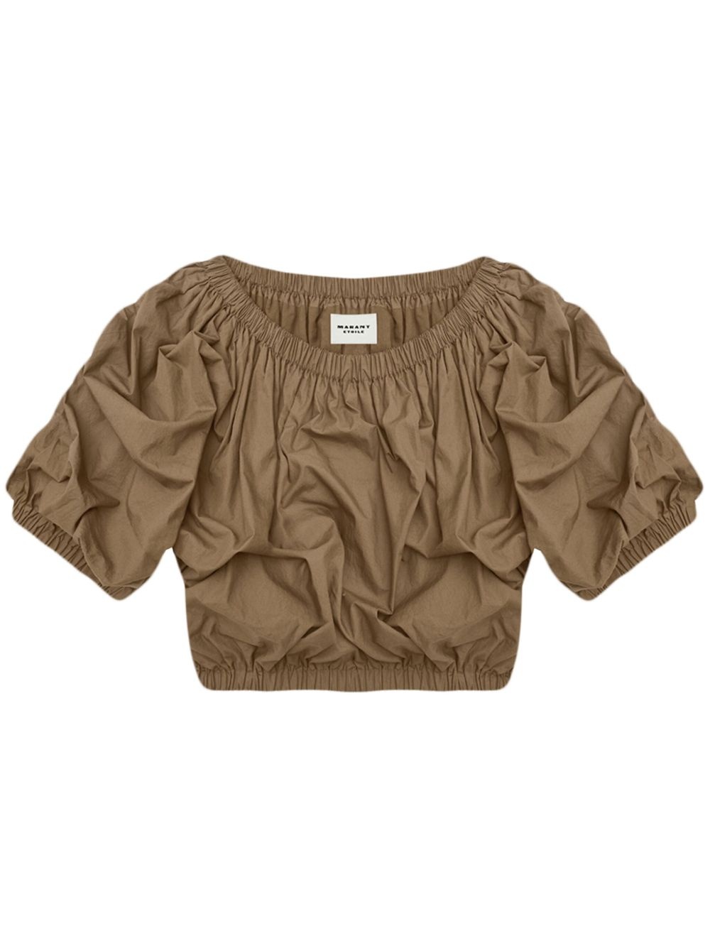 Bertille top Highlights - Khaki green - Organic cotton - Elasticated trim - Off-shoulder - Half-length sleeves - Cropped - Elasticated hem Imported Composition Organic Cotton 100% SIZE & FIT FittingInformation Designed to be unstructured, offering a loose fit throughout The elasticated waist allows for a comfortable fit Made from a midweight non-stretch fabric Washing instructions Read Manufacturer Guidelines