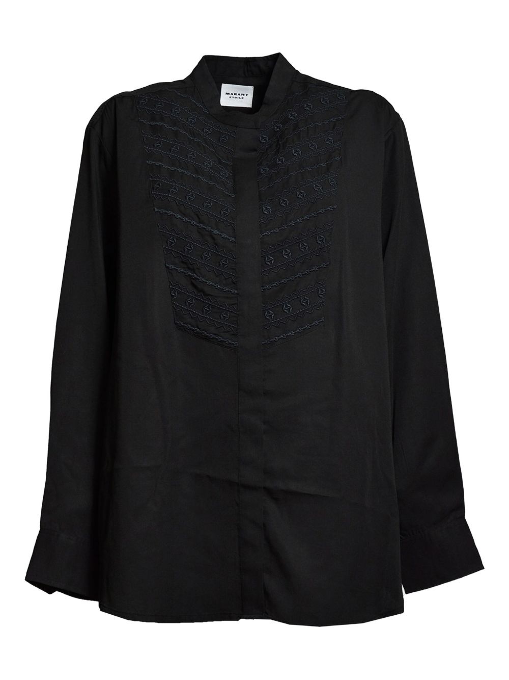 Britten shirt Highlights - Black - Concealed front button fastening - Box-pleat detail - Band collar - Long sleeves Imported Composition Lyocell 100% Washing instructions Read Manufacturer Guidelines