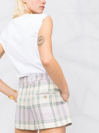 checked linen shorts Highlights - Purple - Linen - Check pattern - Pleat detailing - High waist - Belt loops - Hook and zip fly fastening - Two side slash pockets - Rear button-fastening pocket Imported Composition Outer: Linen/Flax 100% Lining: Cotton 100% SIZE & FIT Model measurements Height 5 ft 10 in(1.79 m) Bust/Chest 31.49 in(80 cm) Hips 35.03 in(89 cm) Waist 24.01 in(61 cm) FittingInformation This piece fits true to size. We recommend you get your regular size Cut for a slim fit Made with a mid-weight non-stretch fabric Washing instructions Dry Clean Only