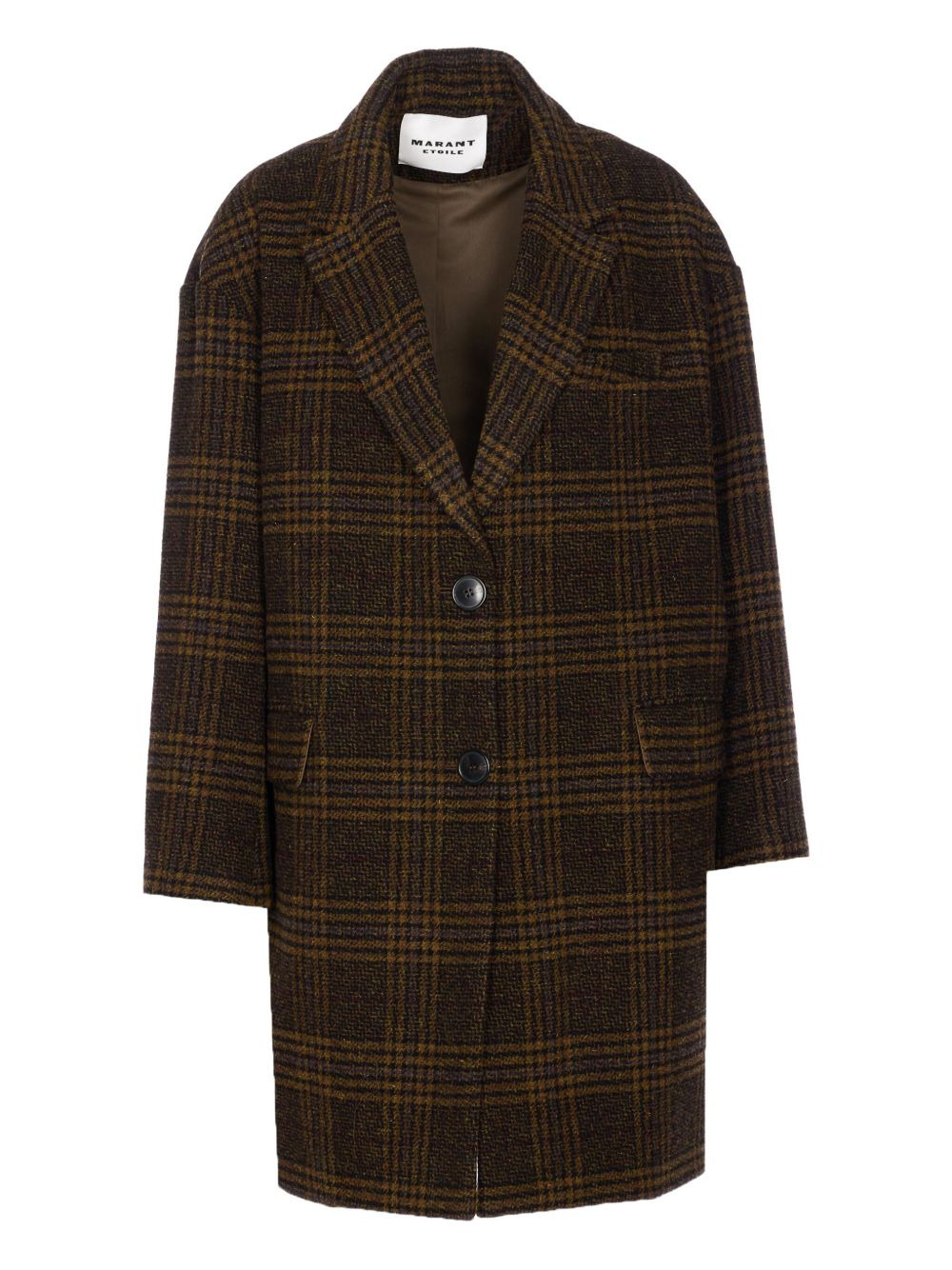 checked V-neck wool single breasted coat Highlights - Brown - Checked pattern - V-neck - Button closure - Front flap pockets - Wool Imported Composition Wool 100% SIZE & FIT FittingInformation Designed for a boxy fit, intended for a loose fit throughout Washing instructions Read Manufacturer Guidelines