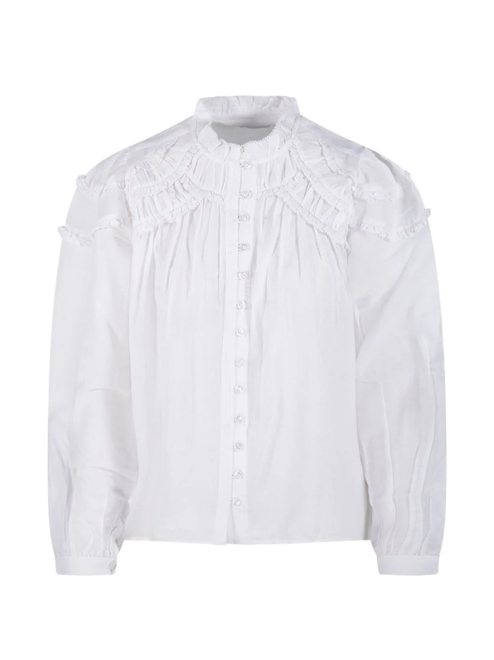 Christa ruffled button shirt Highlights - White - Pleated detail - Button fastening - Ruffled trim - Long sleeves Imported Composition Cotton 80%, Viscose 20% Washing instructions Read Manufacturer Guidelines