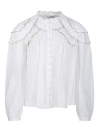 Christa ruffled high-neck blouse Highlights - White - High neck - Ruffled neckline - Layered ruffles - Button front - Long sleeves Imported Composition Organic Cotton 80%, Viscose 20% Washing instructions Read Manufacturer Guidelines