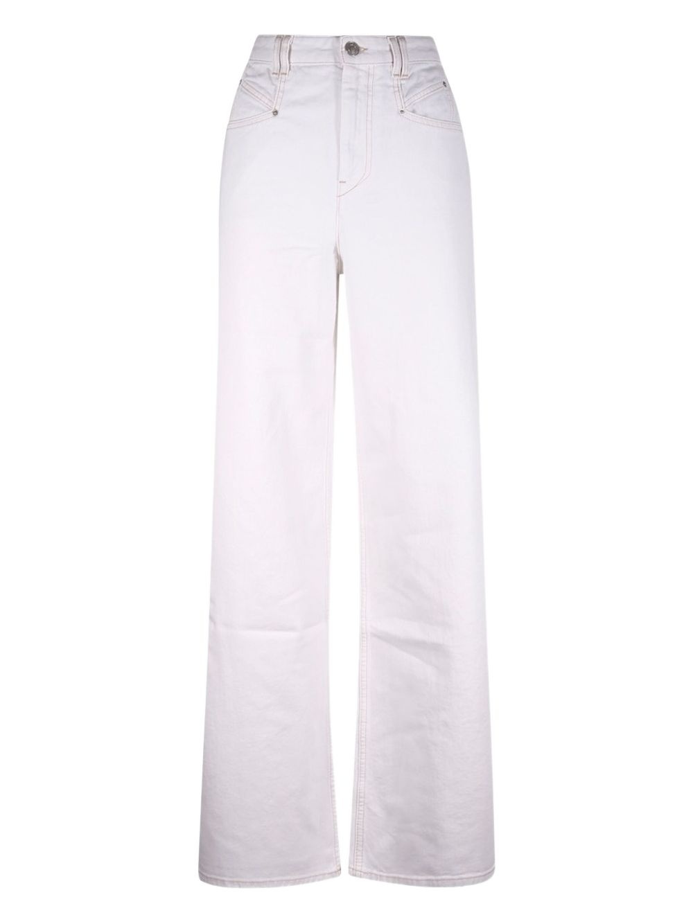 contrast-stitching jeans Highlights - White - High waist - Front pockets - Back pockets - Button fastening - Contrast stitching Imported Composition Cotton 100% Washing instructions Read Manufacturer Guidelines