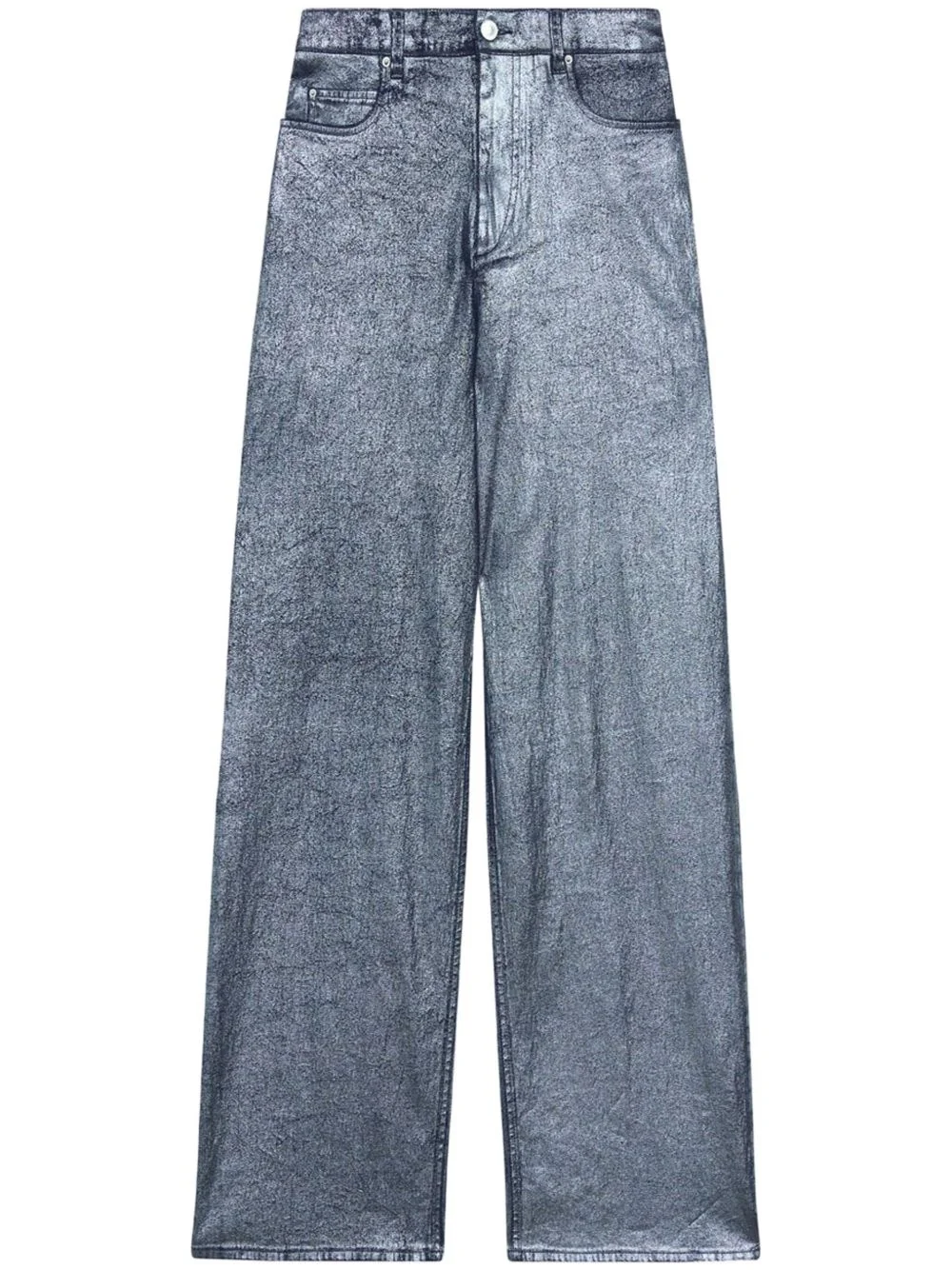Cover jeans Highlights - Silver-tone - Cotton blend - Denim - Metallic finish - Concealed fly and button fastening - Mid-rise - Belt loops - Classic five pockets - Side patch pocket - Wide leg Imported Composition Fabric 100% Washing instructions Read Manufacturer Guidelines