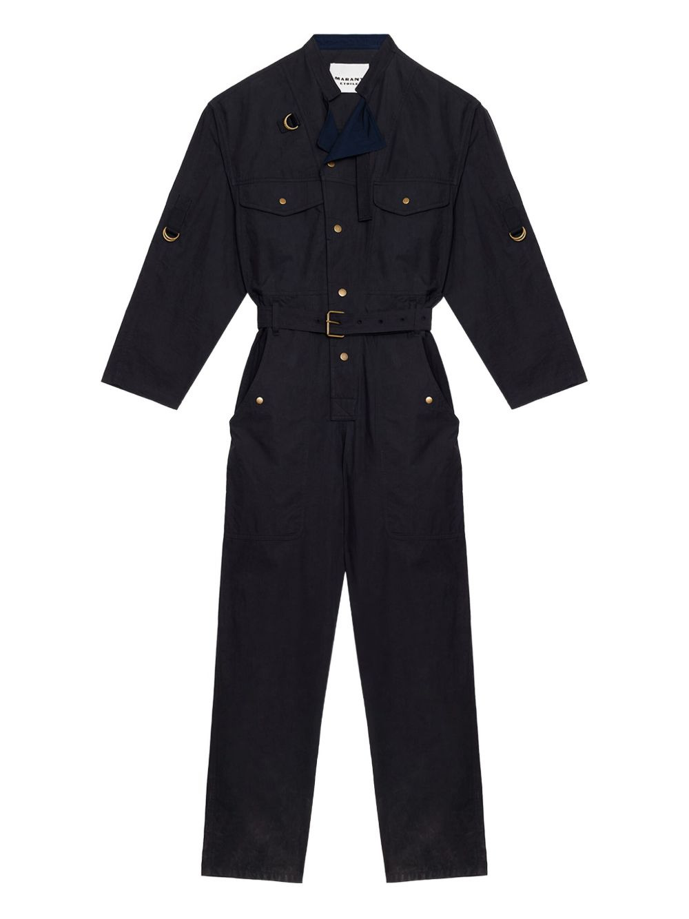 Dahona overall Highlights - Black - Belted waist - Button fastening - Chest pockets - D-ring detail - Long sleeves - Point collar Imported Composition Cotton 100% Washing instructions Read Manufacturer Guidelines