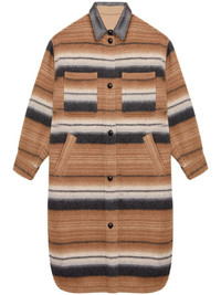 Djila coat Highlights - Light brown/dark grey/light beige - Wool blend - Horizontal stripe pattern - Straight-point collar - Drop shoulder - Long sleeves - Two chest patch pockets - Two side slit pockets - Buttoned cuffs - Straight hem Imported Composition Outer: Polyester 100%, Wool 74%, Polyamide 23%, Other fibres 3% Lining: Cotton 100% Washing instructions Read Manufacturer Guidelines