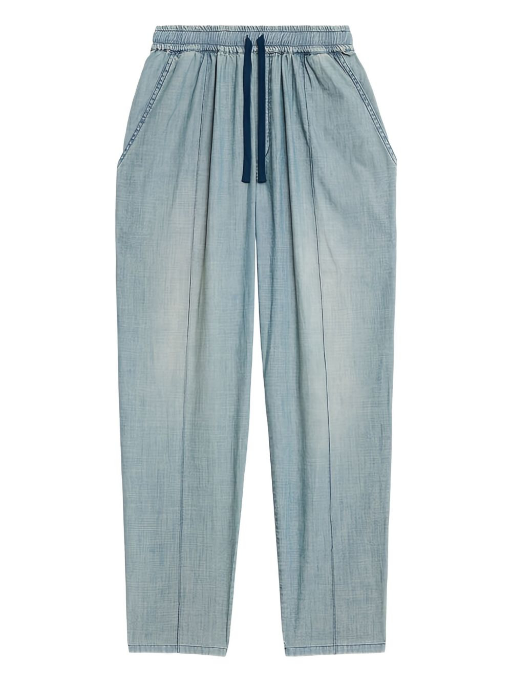 drawstring elastic catalia trousers Highlights - Blue - Chambray - Drawstring - Elastic waist - Italian pockets - Raglan pockets Imported Composition Cotton 80%, Recycled Cotton 20% Washing instructions Read Manufacturer Guidelines