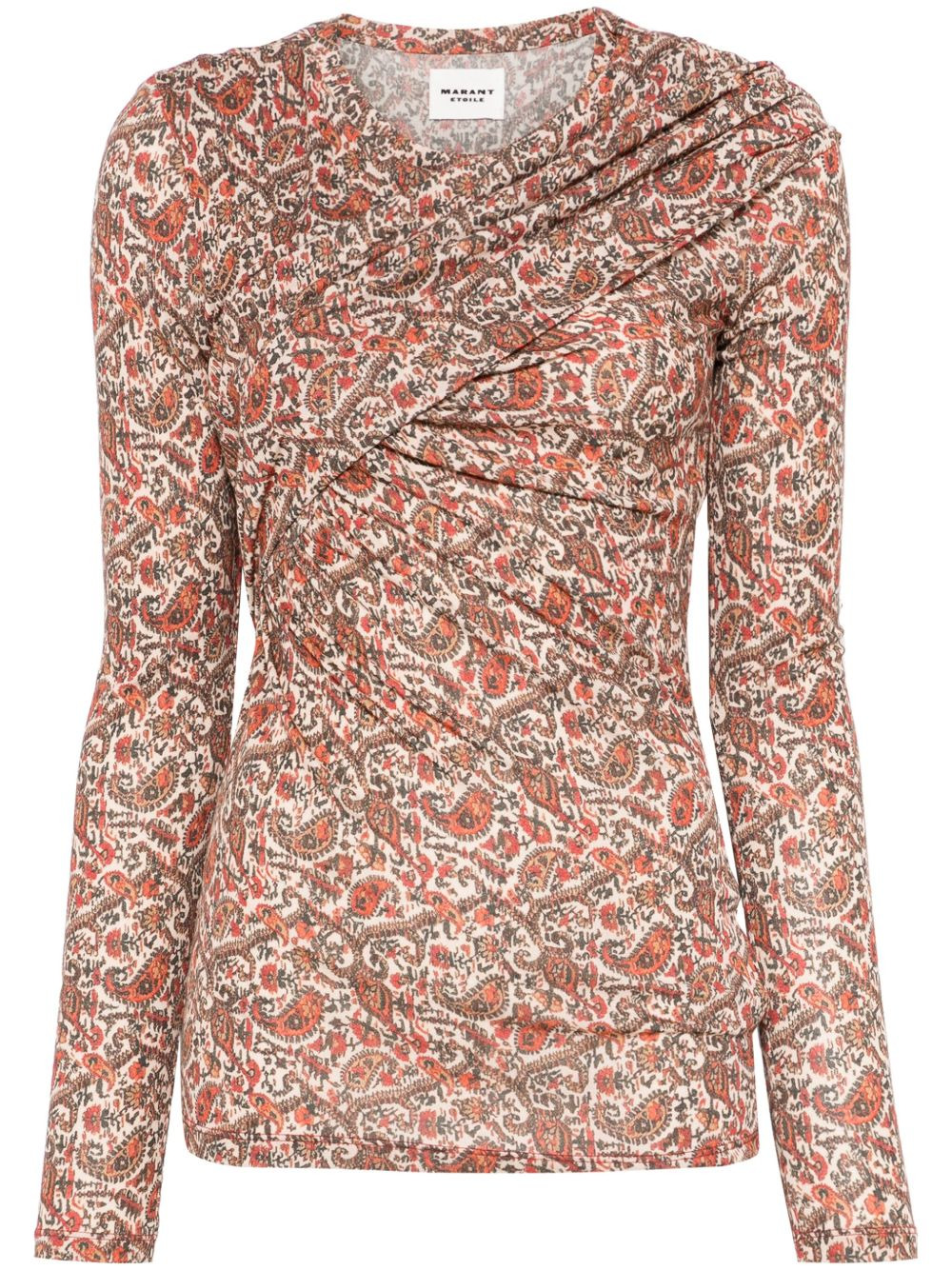 Dressi top Highlights - Rust red - Paisley print - Ruched detailing - Draped detailing - Round neck Imported Composition Fabric 100% SIZE & FIT Model measurements Height 5 ft 10 in(1.78 m) Bust/Chest 33.46 in(85 cm) Hips 36.22 in(92 cm) Waist 23.22 in(59 cm) Washing instructions Dry Clean Only